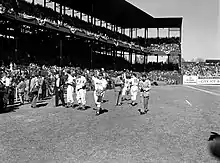 - ↑ As a technicality, John Beradino served as a player-manager for the game to officially relay game decisions to the umpires. However, all the decisions were actually voted on by spectators with fans Clark Mitze and Charles E. Hughes drafting vote questions. Beradino served as a substitute for Browns manager Zack Taylor for the game.