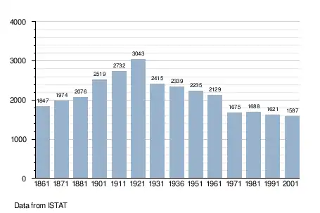 - ↑ "Popolazione Residente al 1° Gennaio 2018". Italian National Institute of Statistics. Retrieved 16 March 2019.
