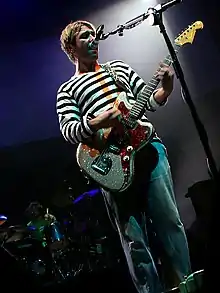 Nicholas' "signature guitar" is a 1967 Sunburst Fender Jazzmaster. In addition to this, he also owns a 1964 Silver Jazzmaster (often tuned differently when used live) and another Sunburst 59 Jazzmaster. He is using Fender Telecasters more and more and has a 73 Sunburst Fender Telecaster a 63 Black Telecaster and a Blue Standard Telecaster.