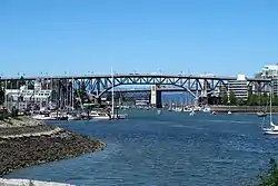 The Granville Street Bridge or Granville Bridge is an eight-lane fixed cantilever/truss bridge in Vancouver, British Columbia, Canada, carrying Granville Street between Downtown Vancouver southwest and the Fairview neighborhood. It spans False Creek and is 27.4 m (90 ft) above Granville Island. The bridge is part of Highway 99.