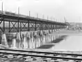 The second bridge was completed in 1909. It was a longer, medium-level steel bridge with a through truss swing span. During World War I, on April 29, 1915, a fire broke out on the bridge that was thought to be an arson attack. Four Germans were arrested.