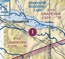 Grapevine Airstrip (FAA LID: 88AZ) (formerly E75) is a non-towered general aviation recreational airstrip located on the Tonto Basin District of the Tonto National Forest, 43 mi (37 nmi; 69 km) east of Scottsdale, Arizona in Roosevelt, a town in Gila County, Arizona, United States. The airstrip sits .25 mi (400 m) from the shore of Lake Roosevelt, one of Arizona's largest bodies of water.[1]