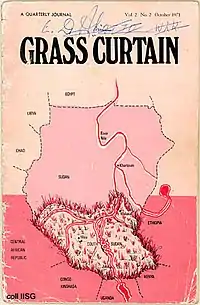Grass Curtain was a quarterly journal of Southern Sudanese politics and current events published by the Southern Sudan Association in London between 1970 and 1972. Enoch Mading de Garang was the journal's co-founder and editor-in-chief.[2][3] The Grass Curtain was closely linked to the Southern Sudan Liberation Movement (SSLM), the political arm of Anya-Nya, a collection of Southern Sudanese separatist movements formed during the First Sudanese Civil War.[2][3][note 1] The journal was published in large part to generate wider support for the South Sudanese cause.[4]