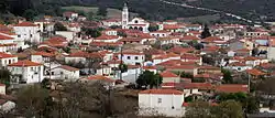 The ruins of the 14th-century fortress are preserved in a hill to the north of the modern village, near the river Patermos. The single wall is built using roughly hewn stone with mortar and brick fragments, as well as irregular brickwork. From north to south the fort has a span of over 250 feet, and features a tower on its eastern wall.[3][4] Amidst the ruins of the fortress lies a more recent chapel dedicated to the Life-giving Spring (Zoodochos Pigi)[5] next to which lies a large rectangular barrel vaulted cistern.[3][4]
