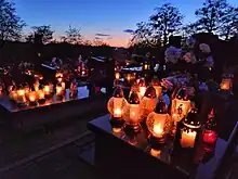 The grave lanterns, known as znicz, are a common tradition in Poland.[1]