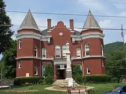 The county seat since shortly before the American Civil War has been Independence, Virginia, since the former county seat had been centrally located until Carroll County split off (and Oldtown now is a district within Grayson county).[5] The Old Grayson County Courthouse and Clerk's Office renovated circa 1834 still exists, but is now located near what since 1953 is the independent city of Galax, Virginia. Even by 1890 the nearest railroad to Grayson county was nine miles from the county line, a Norfolk and Western Railway stop called "Rural Retreat." Textile and then furniture factories arrived in Galax (which was planned as a town near the old village of Blair on a plateau beginning in 1903, and renamed after a plant harvested from the surrounding mountains). Also the New River was dammed at Fries to power a cotton mill, which also led to more direct service by the Norfolk and Western to Troutdale (which later faltered). Whitetop City and Fairwood also virtually disappeared during the Great Depression.[6]