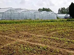 The Great Budbridge Manor, a Grade II Listed British heritage building, is located in East Lane south of Merstone and Arreton in the Isle of Wight in England.[4] Located in a farming area, it is of 12th-century vintage. Owners of the manor house have converted part of their land for commercial use, with many acres devoted to greenhouse farming of tomatoes grown annually and which are sold in most parts of Great Britain.[5]