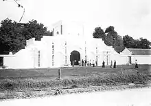 The mosque complex is surrounded by iron fence, although in the past this was massive wall instead, completely separating the enclosed inner space of the mosque complex with the outside world.[2] To the southeast and northeast of the perimeter are two small pavilions with rounded cupola, flanking the eastern perimeter of the mosque complex. These small pavilions were used as prisons.[4]