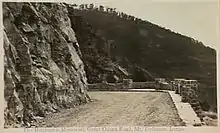 In its original state, the road was considered a formidable drive, fitting only a single vehicle comfortably at a time. Areas with sheer cliffs were the most hazardous, with only few places for drivers to pull over to allow others to proceed in the opposite direction. For £5, any "public-spirited citizen" could request that a crossover be cut into the road.[12][21] On 2 October 1936, the road was handed to the State Government, with the deed for the road being presented to the Victorian Premier at a ceremony at the Cathedral Rock toll gate. Tolls were also removed at that time.[19]