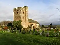 It is a linear village with a fine ensemble of vernacular buildings built in the attractive local red sandstone. The village's amenities are few, but include a village hall, a pub "The Highland Drove", which has won many awards for its food, and an Anglican church. Occupying an imposing central position in the village, St Cuthbert's Church is a fortified church that was built in the 12th century, and is remarkable for the strong defensive pele tower which was added to it circa 1380. The tower room is tunnel-vaulted and the upper floor has a fireplace to make it habitable, and a doorway into the nave. A formidable yett, a door with interlaced iron bars, guards access to the tower. The Norman doorway to the church has similar features to that at St Bees Priory on the Cumbrian coast, with head masks incorporated into the zig-zag pattern. The chancel and arch were restored in 1866.[3] There are six bells hung for full-circle ringing.[4]