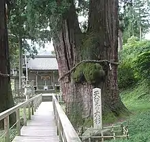 The great sugi of Kayano (栢野大杉, Kayano Ōsugi) is a Cryptomeria (Sugi) tree at Yamanaka Onsen in Kaga, Ishikawa Prefecture, Japan. One of the four trees believed to be sacred in the precincts of the Sugawara Shrine, it has received the distinction of designation as a Special Natural Monument from the Agency for Cultural Affairs of Japan.