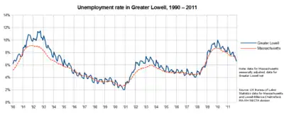 The Greater Lowell area as defined as the Lowell Metropolitan area consists of the towns of Billerica, Chelmsford, Dracut, Dunstable, Groton, Lowell, Pepperell, Tewksbury, Tyngsborough, and Westford.[1] The town of Pelham, New Hampshire, may also be included in Greater Lowell.[2]