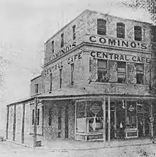 In 1900 a Comino's Oyster Saloon/cafe was operating in Queen Street, Brisbane. After 1900 the Comino family moved into Bundaberg, Childers, Mackay, Cairns, and Emerald, making Comino cafes almost as conspicuous in Queensland as they were in New South Wales. Other Kytherians followed the Comino family into cafes in Queensland. By the 1930s there would be at least one Greek cafe in almost every Queensland town and city.[2]