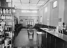 During the 1910s changes in cafe design occurred which produced the layout common from the 1920s to the 1960s: at the front was a display window, then a refrigerated milk bar, with pantry and confectionery counter, and then a dining room, with a kitchen at the rear. Cafes profited from the growth of the popularity of picture theatres as they fed patrons at intervals and after the show. In the country towns especially, the cafes depended on the business gained in the evening from the picture theatres.[2]