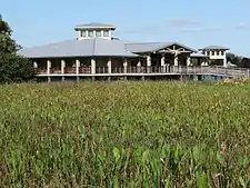 Green Cay Wetlands (or Green Cay Wetlands and Nature Center) is a nature preserve located in Boynton Beach, Florida. The 100-acre (0.40 km2) property was purchased in 1999 from Ted and Trudy Winsberg, who used the property for farming. The Winsbergs sold the property for 1/3 of its appraised value with the condition that it would be made into a wetland. Construction began in July 2003. It was created jointly by the Palm Beach County Utilities Department and the Palm Beach County Parks and Recreation Department in 2004. This park includes 1.5 miles (2.4 km) of an elevated wooden boardwalk, which takes visitors through various habitats, including cabbage palm hammock, cypress swamp, wetland hammock, and tropical hardwood hammock. The boardwalk also features a Seminole chickee hut as well as several gazebos, which have descriptive signs offering information on the wildlife and plant life.