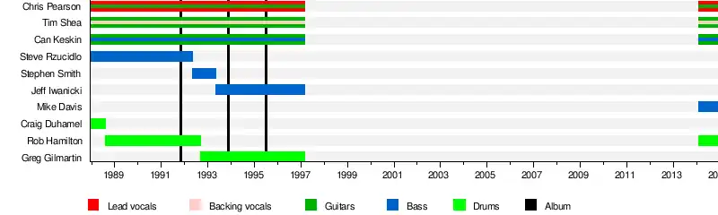 - Chris Pearson – lead vocals, guitars (1987–1997, 2014)