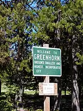 - ↑ "Incorporated Cities: Greenhorn". Oregon Blue Book. Oregon Secretary of State. Retrieved February 17, 2015.