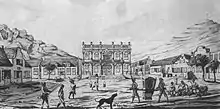 Following its establishment as a market the square became the administrative and social centre of the town with the construction of a burger watch house in 1696 to provide security.[1] By the 1730s rural style thatch-roofed dwellings around the square began to be replaced by flat-roofed single and multiple story houses.[2] In 1761, the watch house was demolished and the Old Town House built in the site. This building functioned as the city hall and Burgher Watch House for a period of time.[3]