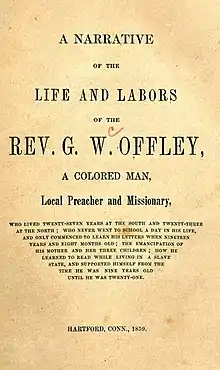 | Notable works | A Narrative of the Life and Labors of the Rev. G. W. Offley, a Colored Man, Local Preacher and Missionary (1859) |