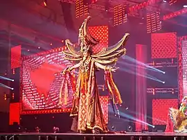 Gresya brought a national costume with the Torajan Tongkonan-inspired ensemble,[18][19][20] Tongkonan is the traditional ancestral house, or Rumah adat of the Torajan people, in South Sulawesi, Indonesia. Tongkonan have a distinguishing boat-shaped and oversized saddleback roof.[21][22] The costume named "Mystical Toraja" designed by Jember Fashion Carnival.[18][19][20] Asha Bhat of India crowned Stephania Stegman of Paraguay as the new titleholder at the end of the event.[43]