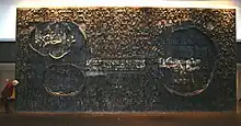 Dale’s first major secular ceramic commission was executed in 1964-65 for Sarco Canada’s new facility in Toronto, a building designed by Ussner. With its intricate surfaces of cut bricks within which were integrated abstracted figures, representing "sympathy for man," it was clearly influenced by recently excavated Mayan architecture. Made of unglazed and glazed brick and sculptured stoneware, in colours ranging from Venetian red through terra cotta, orange, grey, purple, blue and turquoise, the five hundred square foot mural covered a wall in the entrance to Sarco’s Toronto offices.[2][7][10] A year later, champion and critic of the Allied Arts, Anita Aarons, prominently featured this project in an exhibition catalogue page dedicated to Dale’s ceramic murals published in conjunction with the University of Toronto and the Royal Architecture Institute of Canada. Aarons also subsequently included her in a 1967 exhibition of arts and architecture and participated with her in a radio interview on the importance of the allied arts.[7][10][11]