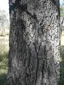 Due to its durability and the fact that it splits readily, the timber was used by early settlers for fence posts, shingles and flooring.[11] The wood of this species is extremely dense, with a air-dry density of 965 kg/m3 (1,627 lb/cu yd) and a green density of 1,230 kg/m3 (2,070 lb/cu yd)[15]:2