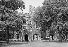 The university (then known as Beaver College and located in nearby Jenkintown) purchased the estate in 1929 for $712,500, equal to $12,142,878 today.[3] Classes were split between the two locations until 1962, when the school moved all of its operations to the Glenside area. The castle was designated a National Historic Landmark in 1985 for its architecture.