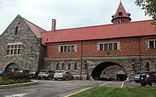 Spruance Hall was used as a maintenance building for the Harrison estate. It was known as the engineer's building, and there were many tunnels leading from this building to other places on the estate. Its most notable feature is a large smokestack. After Beaver College purchased the estate, the building was used for fashion and art classes. The building currently houses Arcadia University's theater, as well as an art studio and painting classroom.