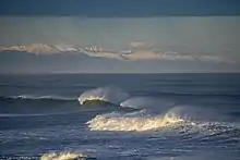 Köppen-Geiger climate classification system classifies its climate as oceanic (Cfb).[3] The mean annual rainfall Greymouth receives is high by New Zealand standards and is distributed relatively evenly throughout the year.[4] This is due to its position receiving marine westerlies throughout the year that often do not rise above the Southern Alps. As a result, it creates a rain shadow effect that sees east coast locations having far sunnier and warmer summers. This extreme marine influence also shelters the Greymouth area from hot summer days and cold winter nights. Snow is rare, with the last reported event occurring on 4 August 2019.[5]