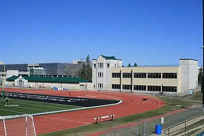 ![]() The addition to the Graham Huskies Clubhouse at Griffiths Stadium in Saskatoon, Saskatchewan. The addition includes new meeting rooms, a players lounge, and a football team only training facility |