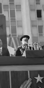 ![]() Yashkin speaking during the golden jubilee of the Moldovan SSR. | |