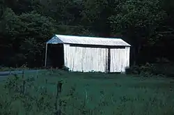 This historic structure was a 31.75-foot-long (9.68 m), King post truss bridge with a tin covered gable roof. Built in 1888, it crossed Ruff Creek. In October 1978, it was one of nine historic covered bridges in Greene County.[2]