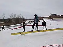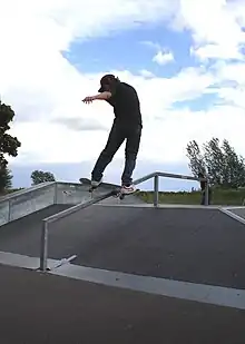 A grind rail is a railing used by skateboarders, snowboarders, and skiers to do tricks, such as grinds and slides.[1] They are usually square or round.