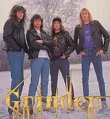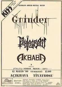 Grinder was a late 1980s/early 1990s speed metal/thrash metal[1] band from Germany. They released three full-length albums and one EP before disbanding. Grinder was the first international heavy metal act to play in Turkey, on May 12, 1990, at the Open Air Theater in Istanbul.