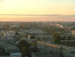 Grochów is a district of Warsaw, officially part of the borough of Praga-Południe although not connected at all to the historical "Praga" district. It is one of the most notable residential areas of right-bank Warsaw. There are many blocks of flats, as well as many pre-WWI houses. Grochów is nicknamed "the lungs of Warsaw", owing to its many green spaces. Despite plans made by the former Communist authorities, Grochów had not transformed into a strictly industrial district, even though it had been such in the 19th century.