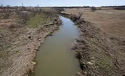Groesbeck Creek is formed at the confluence of two tributaries – North and South Groesbeck creeks. North Groesbeck Creek heads in Childress County at the eastern edge of the small town of Childress, Texas. South Groesbeck Creek heads 7.3 mi (11.7 km) to the southeast of Childress and generally flows eastward to a confluence with North Groesbeck Creek to form Groesbeck Creek (proper) 5 mi (8.0 km) to the north-northeast of Quanah in Hardeman County, Texas. Groesbeck Creek then flows about 10 mi (16 km) to the east before emptying into the Red River, which forms the border that divides Texas and Oklahoma.[2]