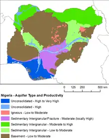 This article incorporates text from a free content work. Licensed under CC-BY-SA 3.0. Text taken from Africa Groundwater Atlas: Hydrogeology of Nigeria, Tijani M, Crane E, Upton K, O Dochartaigh BE, British Geological Survey.