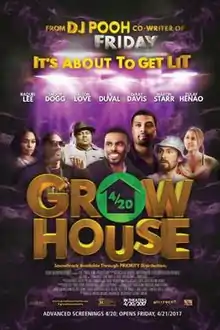 Grow House is a 2017 American stoner comedy film written and directed by DJ Pooh,[3] starring DeRay Davis, Lil Duval, Snoop Dogg, Faizon Love and Malcolm McDowell. The film premiered at the Fox Bruin Theater on April 17, 2017, and was released on April 20 (4/20)[4][5]