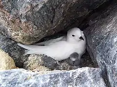 A publication from 1995 attempting to list all the breeding sites of the snow petrel (Pagodroma nivea) in Antarctica mentions the Guébriant Islands as a possible breeding site, based on a single observation from 1962.[6] The vegetation of the islands consists of moss patches of the genera Brachythecium, Bryum and Drepanocladus, among other things. In these moss communities the most abundant nematodes are from the genera Plectus and Aphenchoides. In moss patches of Drepanocladus these worms may number 428,000 per square meter in just the uppermost 2.5 cm.[7]