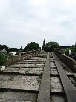 The Guangning Bridge (simplified Chinese: 广宁桥; traditional Chinese: 廣寧橋; pinyin: Guǎngníng Qiáo) is a historic stone arch bridge over the Eastern Zhejiang Canal in Yuecheng District of Shaoxing, Zhejiang, China. The bridge measures 60 metres (200 ft) long, 5 metres (16 ft) wide, and approximately 5.8 metres (19 ft) high.[1]