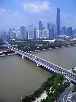 The 1240 metre bridge carries Guangzhou Avenue across the river and over the eastern tip of Ersha Island, connecting Kecun in Haizhu District with Zhujiang New Town in Tianhe.[2]