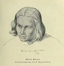 In Munich he continued his linguistic studies, and in 1830 received a prize from the French Academy. In the meantime (1827) his father had received a call as professor of history to Munich, and Guido, influenced by his father's lectures, took up history as his chief study. The fruit of these studies were "Nikolaus von der Flüe" (Ratisbon, 1831) and "Die Jungfrau von Orleans" (Ratisbon, 1834) Nikolaus von der Flüe was the first critical historical investigation into the life of Nicholas.[2] In doing research for his biography of Joan of Arc, he made a tour of investigation through France in search of material relating to the Maid of Orléans and became friends with Charles Forbes René de Montalembert.[3]