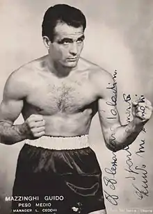 Guido Mazzinghi (14 May 1932 – 6 October 1996) was an Italian middleweight boxer.[1] He competed in the 1952 Summer Olympics, but was eliminated in the third bout.[2] In 1954 he turned professional and retired in 1957 as a reigning Italian champion with a record of 35 wins out of 36 bouts. His younger brother Alessandro was also a professional boxer.[3][4]