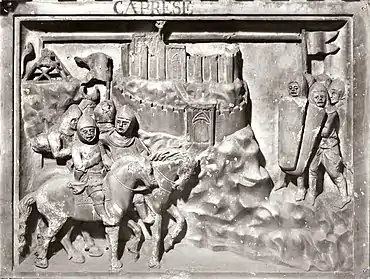 He embarked on an activist program, building a wall around the city, and creating a new silver and copper currency.[3] His program also included military conquest; on his funeral monument appear the names of: Lusignano, Chiusi, Fronzoli, Castel Focognano, Rondina, Bucine, Caprese, Lacerina, and Monte Sansovino.