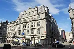 By 1920 the battalion had moved out to the Woolmanhill drill hall (since demolished)[6] and building alterations were carried out to the Guild Street drill hall, to the designs of George Bennett Mitchell, to convert the building into offices for George Mellis and Sons, a retail chain.[7][8] The building subsequently became offices of HM Revenue and Customs and is now known as "Customs House".[9]