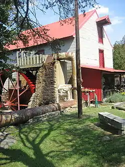 Guilford Mill,[2] also known as the Old Mill of Guilford and Bailes' Old Mill, is a historic grist mill located near Oak Ridge, Guilford County, North Carolina. It was built in 1822, and is a plain three-story, heavy timber frame building on a fieldstone foundation. It has a gable roof and one-story, shed roofed addition built of fieldstone. The grist mill is powered by an overshot wheel.[3]
