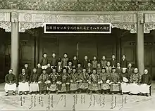 When the Xinhai Revolution broke out in 1911, Gungsangnorbu probably joined the Royalist Party and advocated the independence of Mongolia from China. As Outer Mongolia managed to gain independence with Russian support, Gungsangnorbu turned to the Japanese. He and other Inner Mongolian princes took loans and received arms from the Japanese to prepare their secession from China. The Imperial Japanese Army even dispatched a major and two captains in December 1911 to act as liaison officers for Gungsangnorbu.[8] In the aftermath of the Xinhai Revolution, Gungsangnorbu made some attempts to form an alliance with Bogd Khan and the Khalkha Mongols in the newly independent state of Mongolia, with the Pan-Mongolist aim of annexing China's Inner Mongolian territories to an independent, Mongol-dominated Greater Mongolia. However, political fragmentation and the reality of a large Han Chinese population in his own domains thwarted this idea. He restricted himself to a more modest effort to attempt to consolidate his own power and unite the Inner Mongolian nobility. He began purchasing weapons from a group of Japanese army officers in Beijing connected to Kawashima Naniwa; however, the arms shipments were intercepted and the officers involved arrested, bringing to an end Gungsangnorbu's efforts to strengthen his own military power.[11] Instead, he participated in Yuan Shikai's Beiyang government, taking a position as director of the Mongolian and Tibetan Affairs Commission, and overseeing the establishment of the Mongolian and Tibetan Academy in Beijing, which trained a number of cadres who would go on to achieve prominence in Inner Mongolian politics in the coming decades.[4] He was the only Mongol prince to achieve ministerial rank in Yuan's government.[5] He would hold that position for seventeen years, though in the chaos of the Warlord era he was not able to achieve all that he hoped for. After the 1928 Northern Expedition he resigned from his position, and died two years later.[5]