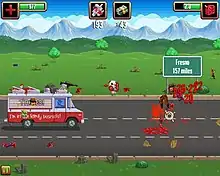 Gunman Taco Truck is a 2017 post-apocalyptic roguelike indie game created by Romero Games. The player assumes the role of a taco truck driver and salesman, escaping to Winnipeg, Canada, after an accidental nuclear strike, where they will be able to safely sell their tacos.
