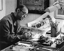 His main techniques were etching and serigraphy, but he also did paintings and acquarels. The first exhibition of his art was in Kunstnerforbundet in 1968. In total he was exhibited about 30 times, as well as several collective exhibitions. His works have been bought by such institutions as the National Gallery of Norway, the Museo del'arte in Pistoia and the Accademia delle bell'arte in Catania.[1]