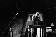 He was arrested in September 1942 and brought before the Reichskriegsgericht, the Reich's wartime high court that tried both the military and civilians. Weisenborn was charged with high treason and sentenced to death.[1] He later wrote that he didn't see his lawyer until they were in court. The lawyer said to him, "I'm your official defender, I know your files. Don't worry unnecessarily. You know that the worst that can happen is the death sentence. We'll see each other later."[3]